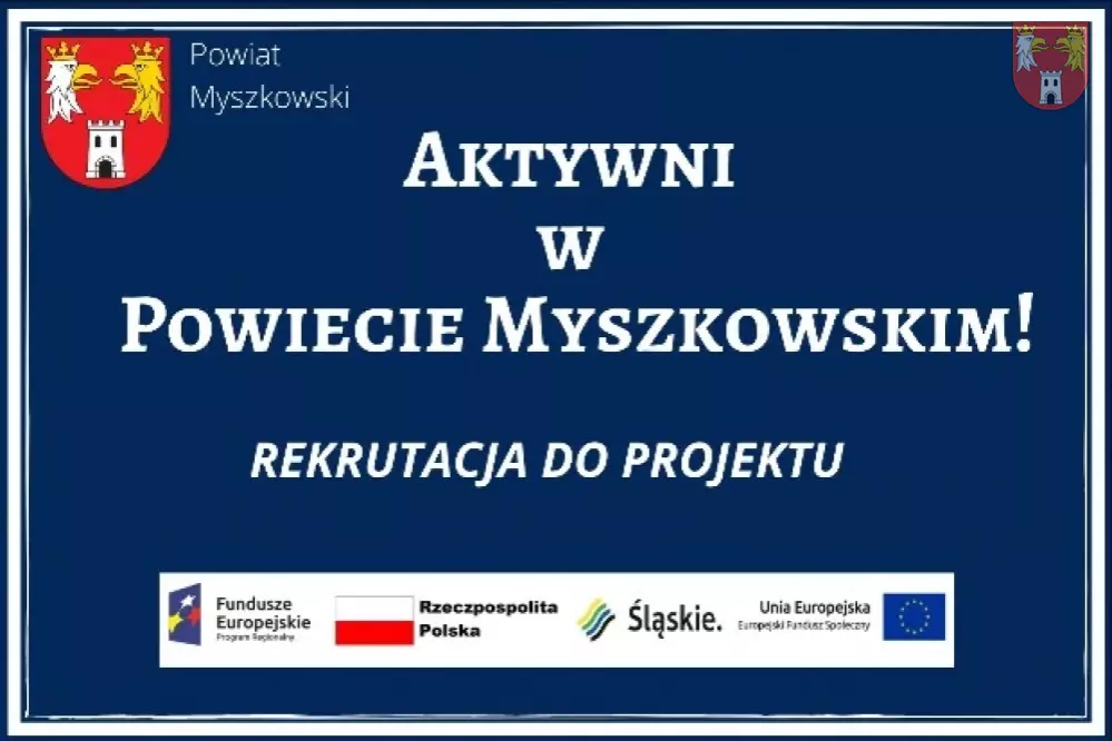 Powiat Myszkowski ogłasza rekrutację do projektu pn. „AKTYWNI W POWIECIE MYSZKOWSKIM" współfinansowanego przez Unię Europejską ze środków Europejskiego Funduszu Społecznego w ramach Regionalnego Programu Operacyjnego Województwa Śląskiego na lata 2014-2020.