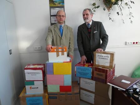 W akcję zbiórki słodyczy włączyły się zarówno szkoły ponadgimnazjalne, jak i powiatowe instytucje działające na terenie naszego powiatu. Blisko 100 kg zebranych słodyczy, w ubiegły wtorek trafiły do rąk przedstawiciela Stowarzyszenia "Wspólnota Polska". Stowarzyszenie "Wspólnota Polska" jest organizacją pozarządową działającą pod patronatem Senatu Rzeczypospolitej Polskiej. "Dziękuję wszystkim osobom, które bezpośrednio były zaangażowane w akcję zbiórki słodyczy dla polskich dzieci na Białorusi, uczniom szkół ponadgimnazjalnych, dyrekcji i gronom pedagogicznym, pracownikom instytucji. Wszyscy, którzy przekazali w naszej akcji choćby najdrobniejszy dar, mogą czuć, iż przyczynili się nie tylko do materialnej pomocy, ale również do wysiłków w umacnianiu więzi Polonii i Polaków zamieszkałych za granicą z Ojczyzną, jej językiem i kulturą." - mówi starosta myszkowski Łukasz Stachera. Jak zapowiada starosta, planowane są kolejne formy pomocy. Zbiórkę koordynowała naczelnik Wydziału Edukacji, Zdrowia i Spraw Społecznych Barbara Kilanowska. Przekazanie zebranych darów odbyło się w miniony wtorek w Starostwie Powiatowym. W Myszkowie gościł tego dnia Stefan Gajda, prezes Górnośląskiego Oddziału Stowarzyszenia "Wspólnota Polska". W imieniu starosty myszkowskiego Łukasza Stachery, dary dla polskich dzieci przekazał Andrzej Kozłowski, rzecznik prasowy starosty. W akcję włączyły się m.in.: Starostwo Powiatowe w Myszkowie, Powiatowe Centrum Pomocy Rodzinie w Myszkowie, Agencja Restrukturyzacji i Modernizacji Rolnictwa w Myszkowie, Liceum Ogólnokształcące im. mjra H. Sucharskiego w Myszkowie, Zespół Szkół nr 1 im. E. Kwiatkowskiego w Myszkowie, Zespół Szkół Nr 2 im. H. Kołłątaja w Myszkowie, Zespół Szkół im. T. Kościuszki w Żarkach. Słodycze zbierane były wśród uczniów szkół ponadgimnazjalnych, pracowników instytucji i interesantów. Można je było przekazywać również w wyznaczonych stanowiskach zbiórki w budynku Starostwa. Wszelkie zebrane dary, na Białoruś mogą trafić jedynie poprzez "Wspólnotę Polską". To jedyna droga, która akceptują białoruskie władze w Mińsku. Zebrane słodycze przekazane zostaną Andżelice Borys - prezes Związku Polaków na Białorusi.