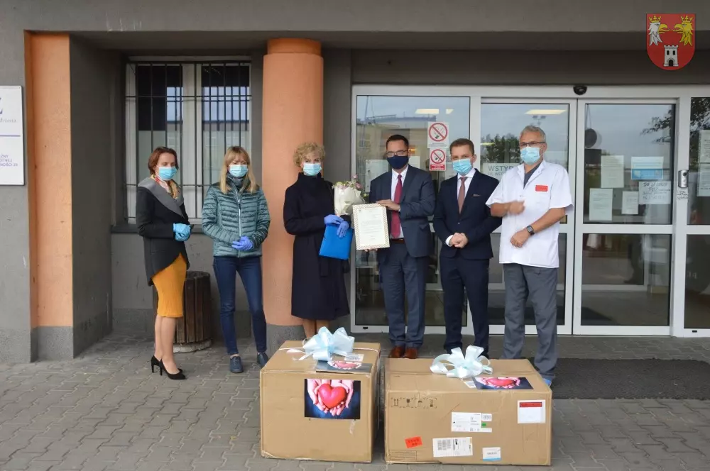 Respirator przekazała na ręce Starosty Myszkowskiego Piotra Kołodziejczyka i Dyrektora Samodzielnego Publicznego Zespołu Opieki Zdrowotnej w Myszkowie Krzysztofa Kułacza Prezes Zarządu Fundacji Silvia Sobczyk.