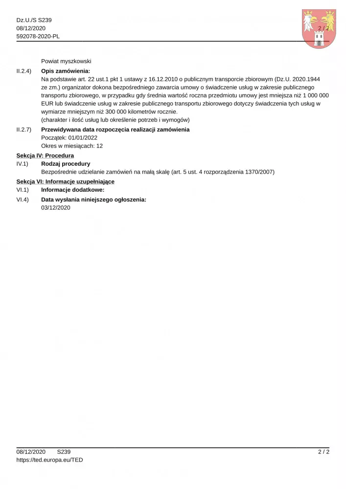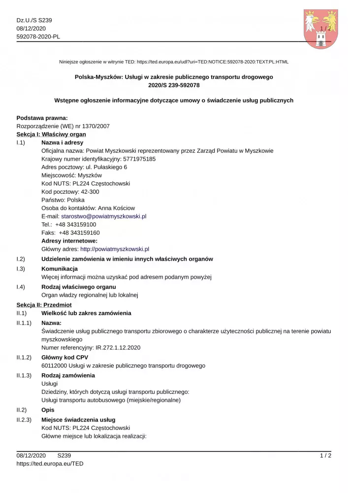 Polska-Myszków usługi w zakresie publicznego transportu drogowego