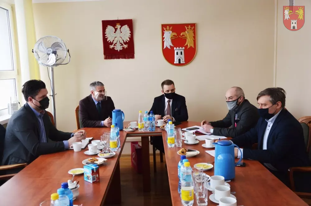 Spotkaniu przewodniczył Starosta Myszkowski Piotr Kołodziejczyk, a uczestniczyli w nim również – Wicestarosta Mariusz Morawiec, Burmistrz Gminy i Miasta Koziegłowy Jacek Ślęczka, Wójt Gminy Niegowa Mariusz Rembak i Dyrektor ds. Majątku Oświetleniowego TAURON Dystrybucja Waldemar Jemioła.