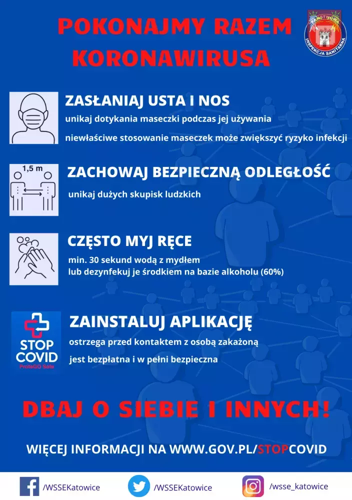 Zachęcamy do zapoznania sie z aplikacją STOP COVID ProteGo Safe, która która skutecznie pomaga w ograniczaniu rozprzestrzeniania się koronawirusa. Korzysta z API opracowanego przez Apple i Google. Działa w oparciu o technologię Bluetooth, co ważne - nie korzysta z żadnych danych użytkowników. Wasza prywatność jest dla nas najważniejsza.