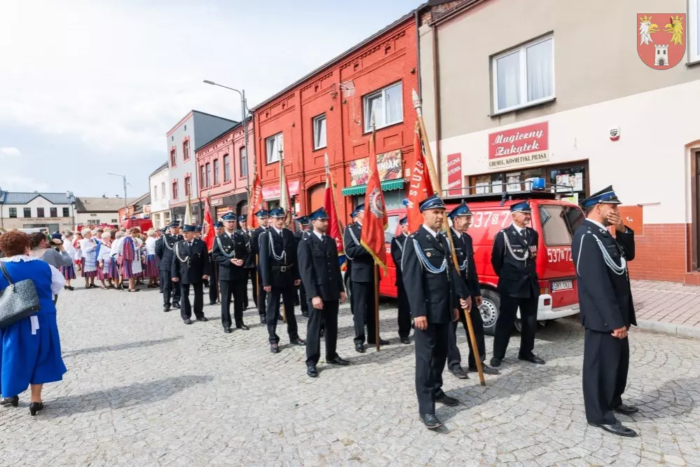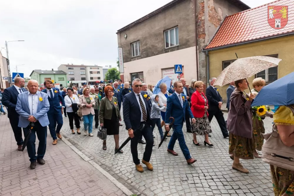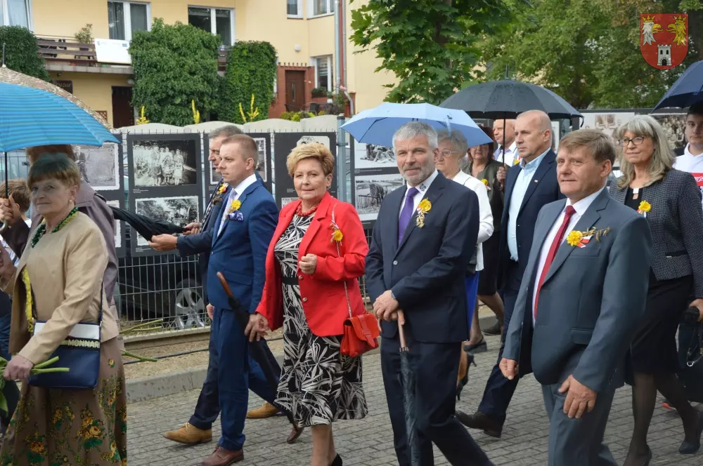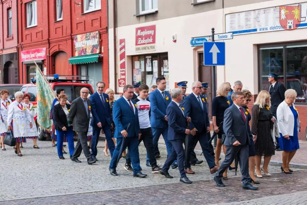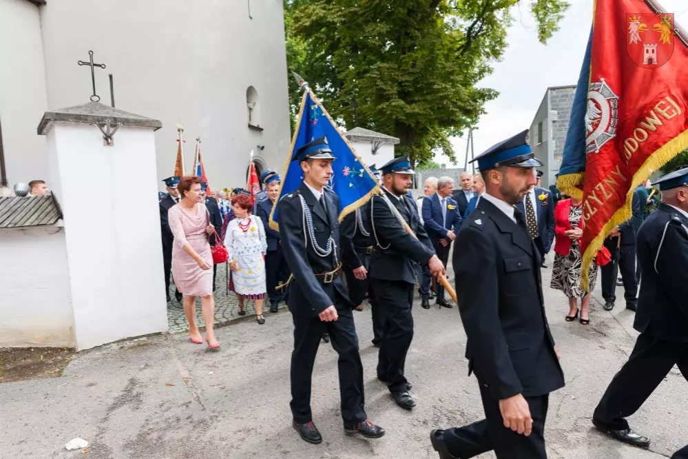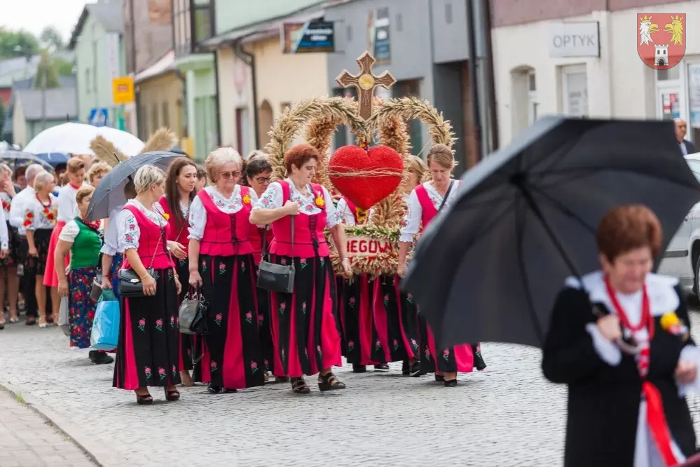 Początek uroczystości miał miejsce na koziegłowskim rynku, skąd goście dożynkowi przemaszerowali do kościoła pw. św. Marii Magdaleny. Mszę dziękczynną w intencji rolników i rolnictwa odprawił proboszcz dr Robert Nemś. Zaraz później uczestnicy obchodów utworzyli przepiękny barwny korowód, który udał się na tren Gminnego Ośrodka Promocji Kultury, gdzie rozpoczęły się uroczystości. Przemarsz poprowadziła Gminna Orkiestra Dęta z Koziegłów. Tuż za nią maszerowały poczty sztandarowe OSP, zaproszeni goście, instytucje rolnicze, koła gospodyń wiejskich, które niosły tradycyjne wieńce dożynkowe.