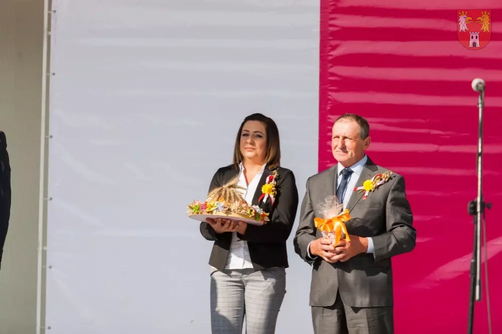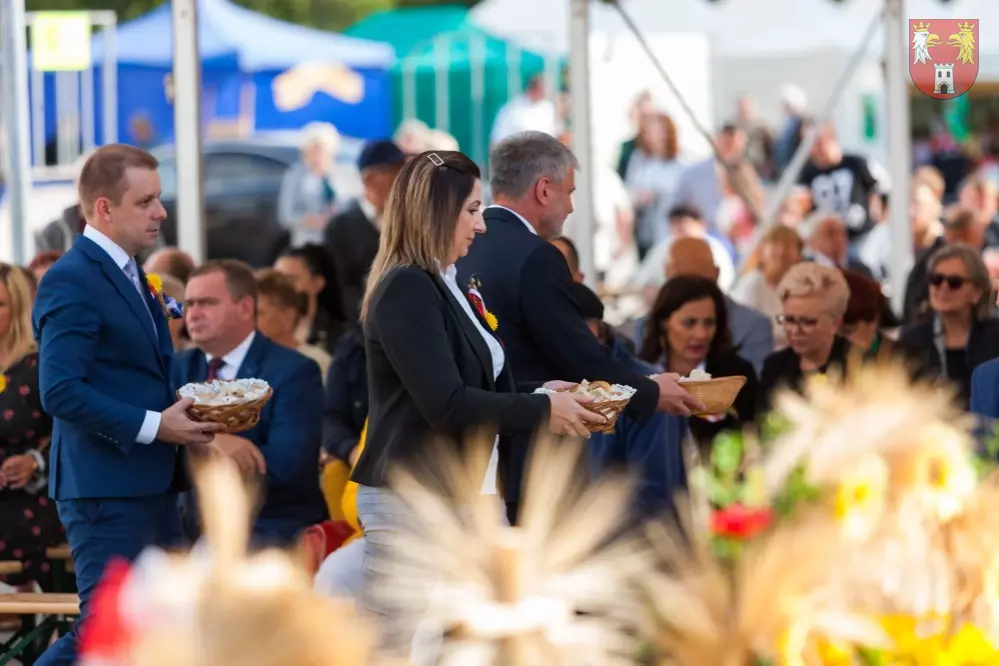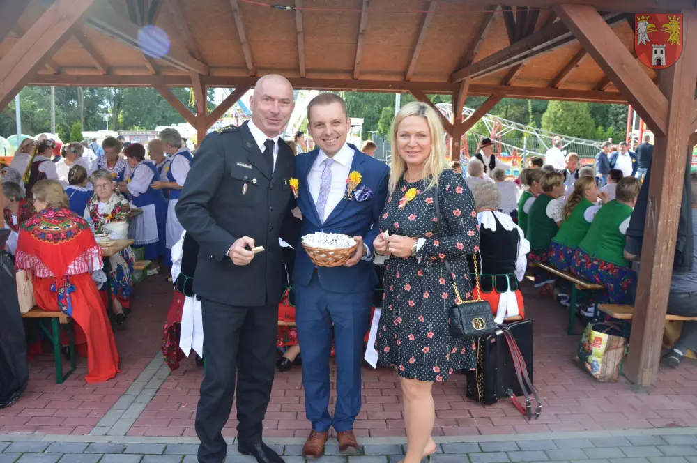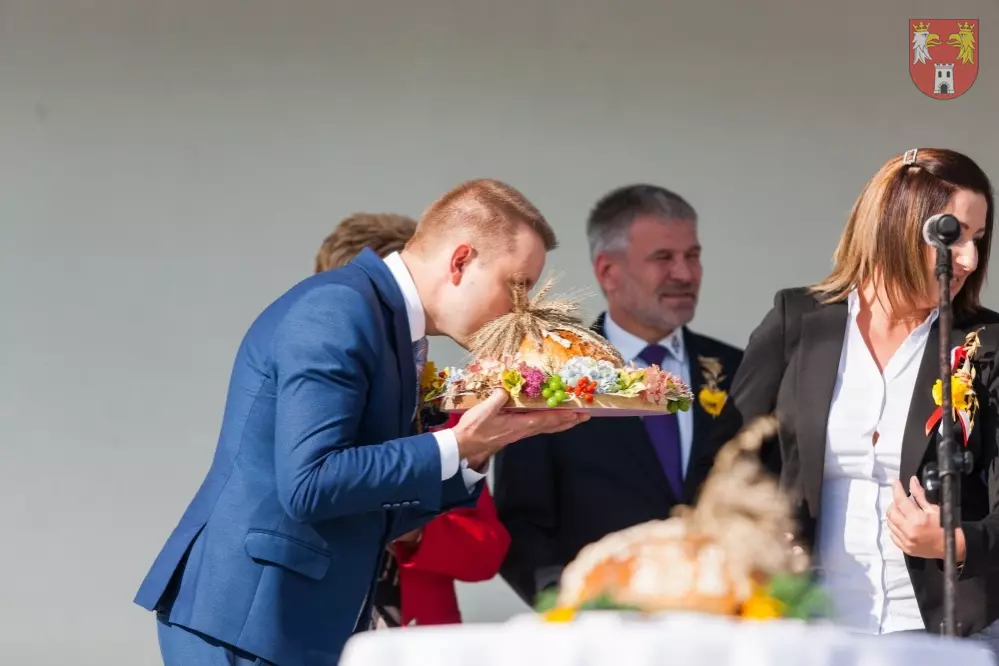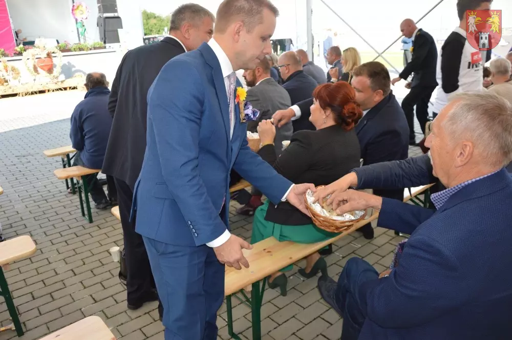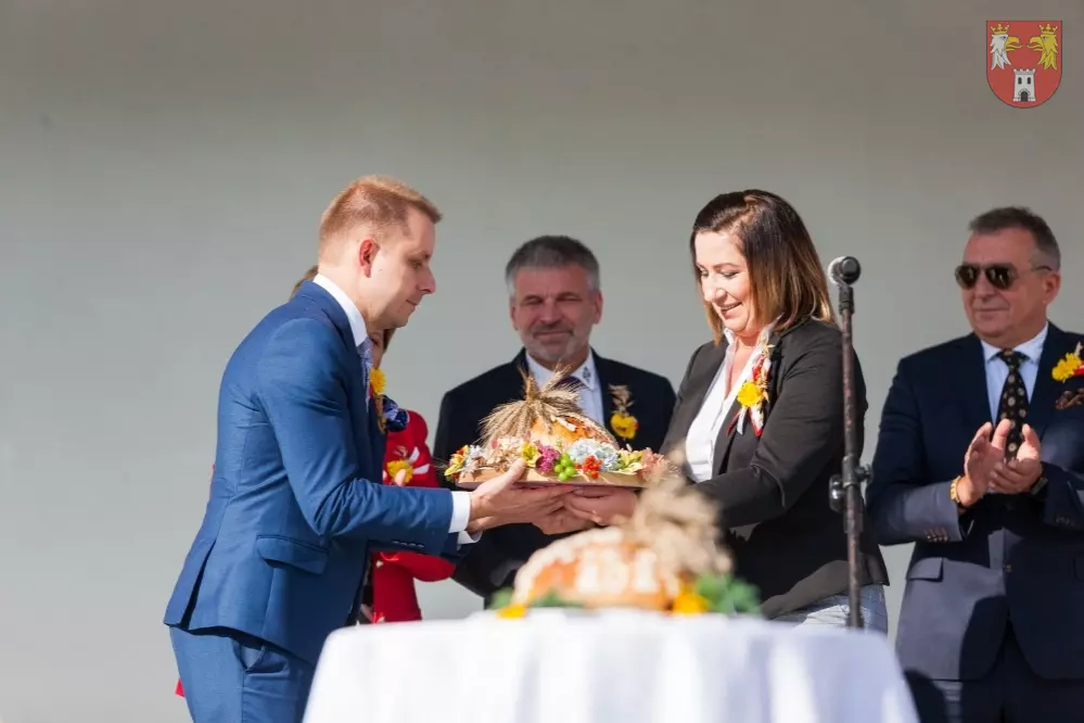 Jak każe dożynkowa tradycja, stałym elementem dożynkowych obchodów jest ceremoniał przekazania chleba wypieczonego z tegorocznych zbiorów oraz miodu na ręce gospodarzy – przedstawicieli samorządowej władzy. Chleb i miód przekazali w tym roku Starostowie Dożynek – Agnieszka Galas i Dionizy Knapik.