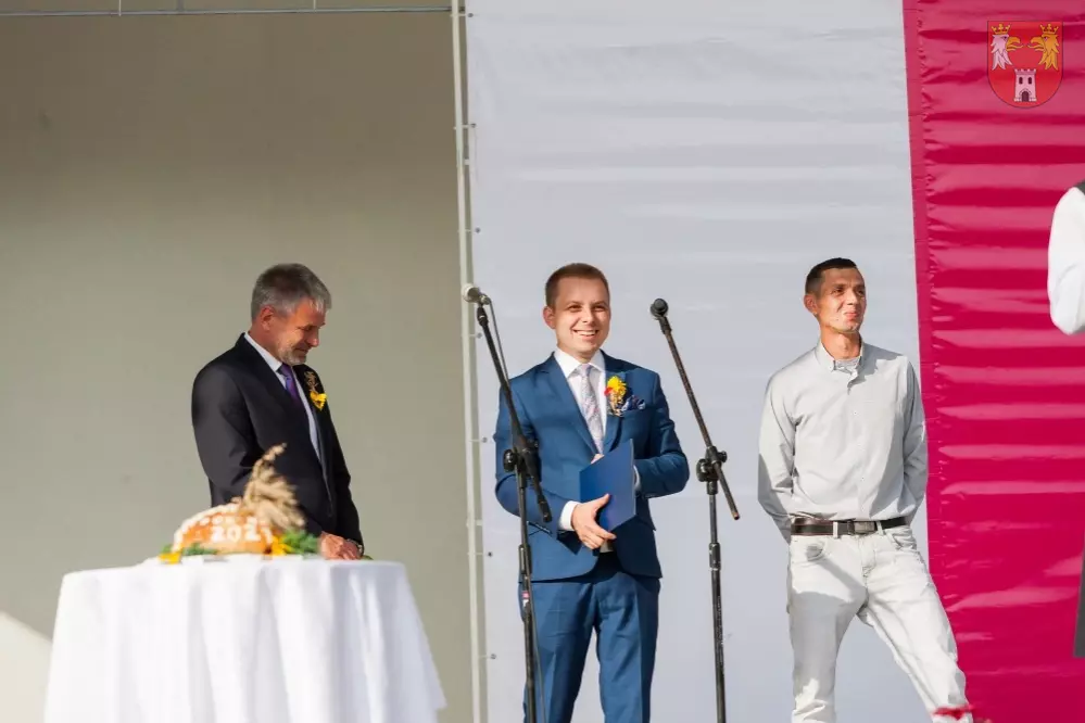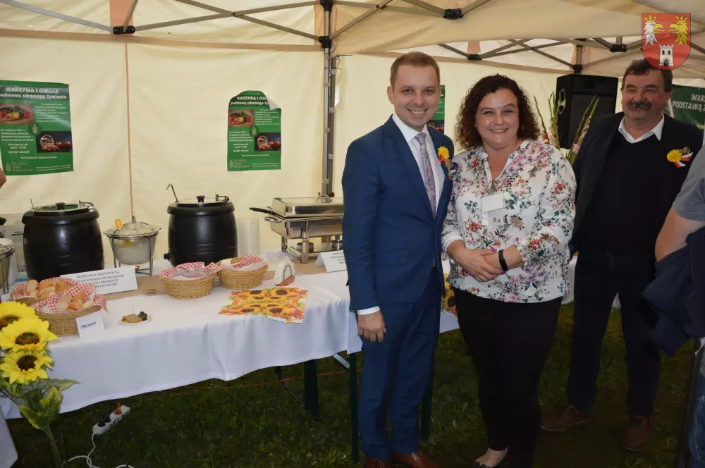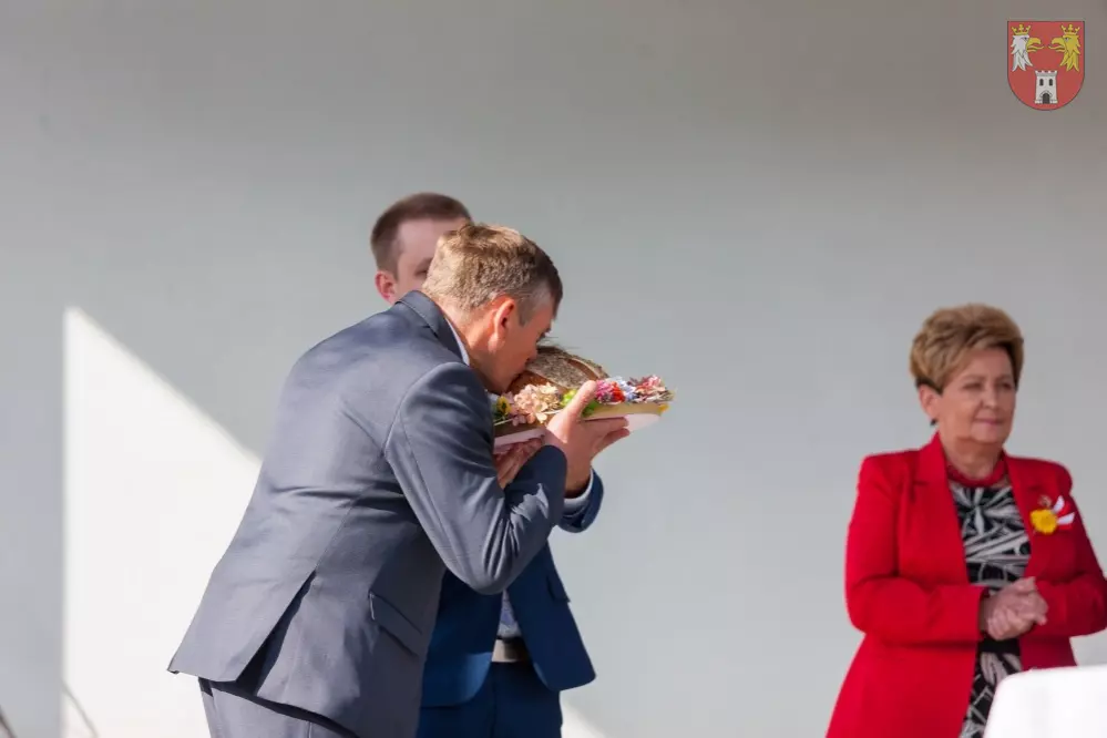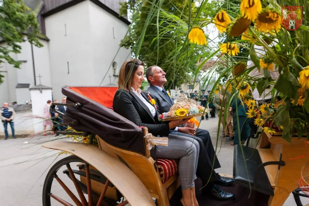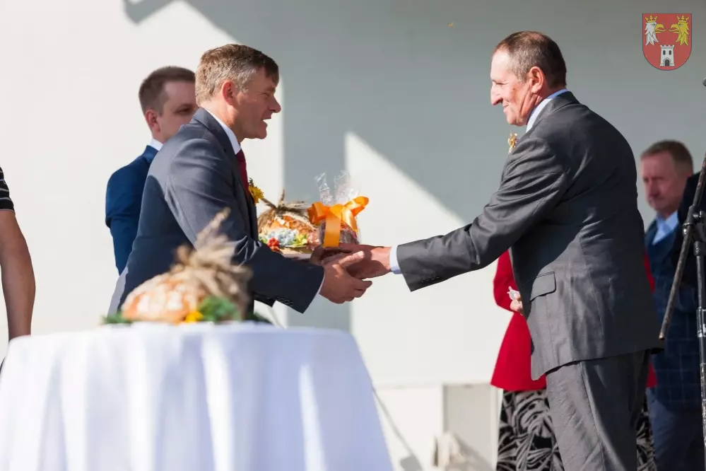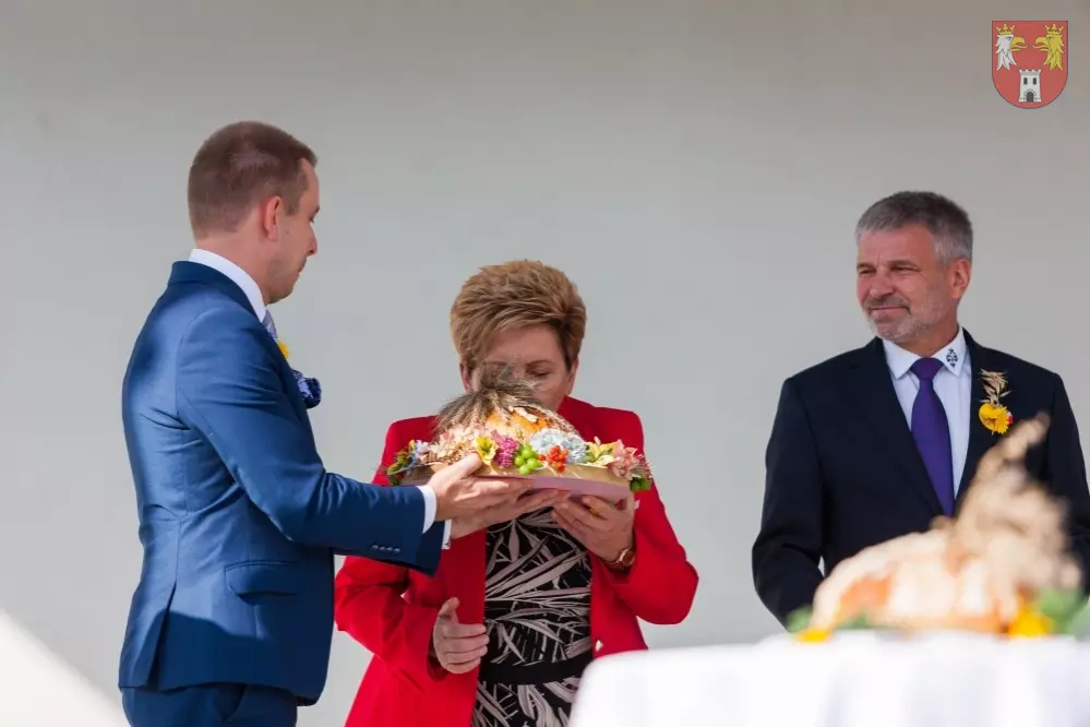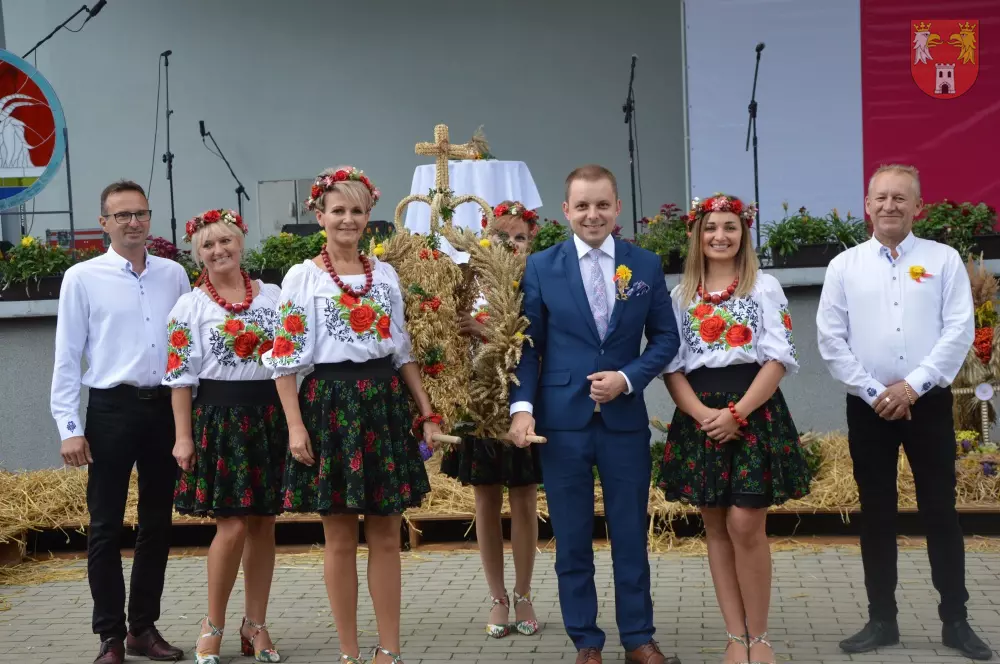 Jak każe dożynkowa tradycja, stałym elementem dożynkowych obchodów jest ceremoniał przekazania chleba wypieczonego z tegorocznych zbiorów oraz miodu na ręce gospodarzy – przedstawicieli samorządowej władzy. Chleb i miód przekazali w tym roku Starostowie Dożynek – Agnieszka Galas i Dionizy Knapik.