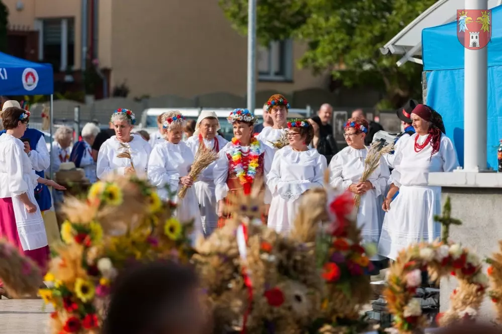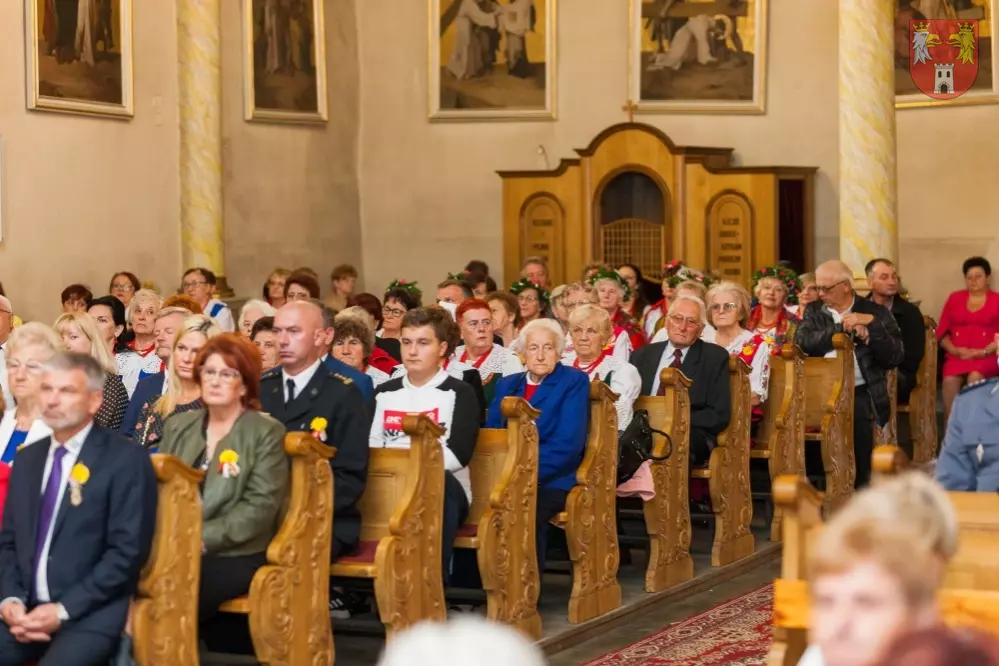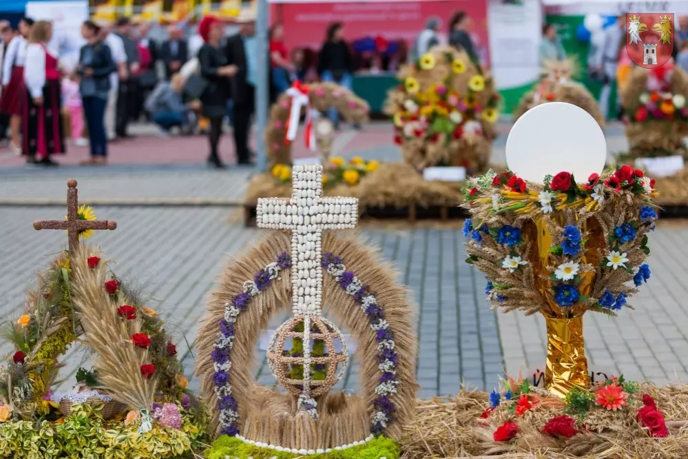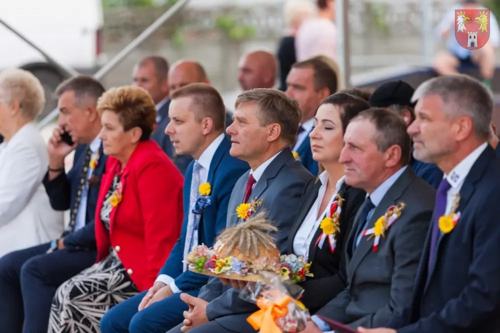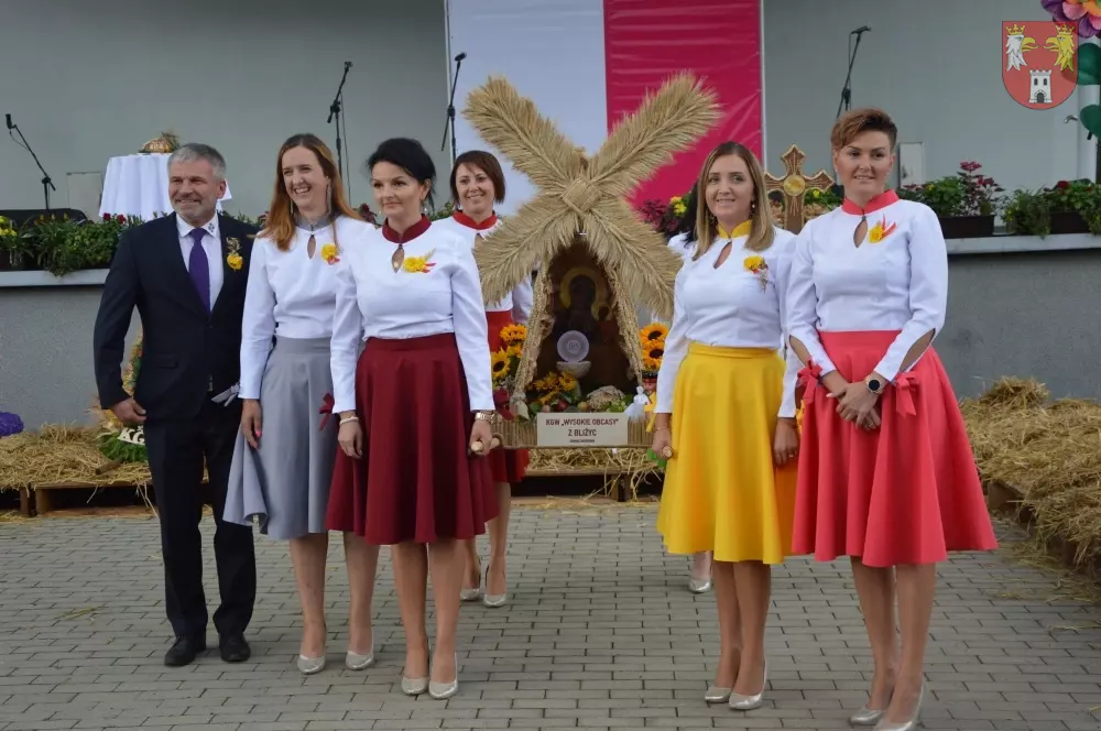 Obok chleba, najbardziej rozpoznawalnym elementem symbolicznym dożynek jest wieniec, bez którego żadne święto plonów nie mogłoby się odbyć. Jak nakazuje obyczaj, niezwykle piękne, kunsztownie przyozdobione wieńce przygotowały koła gospodyń wiejskich z całego Powiatu, a także wyjątkowo. Dożynkowe wieńce na ręce zaproszonych gości wręczały: