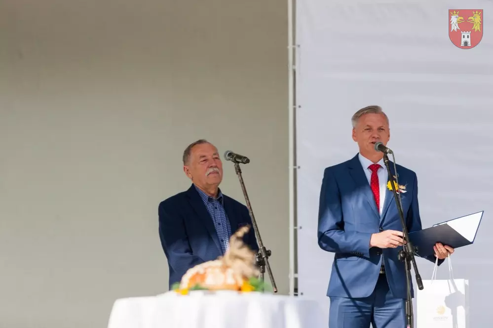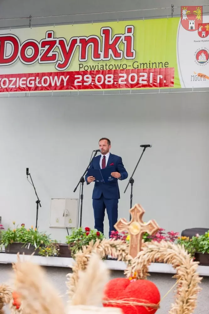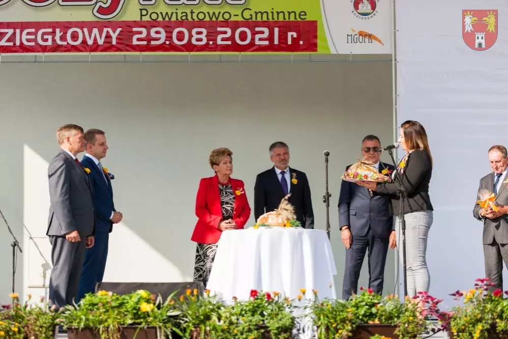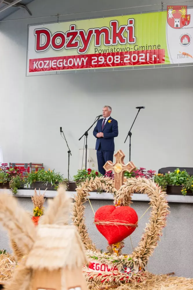 Następnie Starosta Myszkowski Piotr Kołodziejczyk i Burmistrz Gminy i Miasta Koziegłowy Jacek Ślęczka jako gospodarze dożynek podziękowali rolnikom za całoroczny trud. Obaj zwrócili uwagę na to, jak wiele zawdzięczamy pracy gospodarstw rolnych, ale również podkreślili wagę pracy organizacji rolniczych oraz instytucji działających na rzecz rolnictwa.