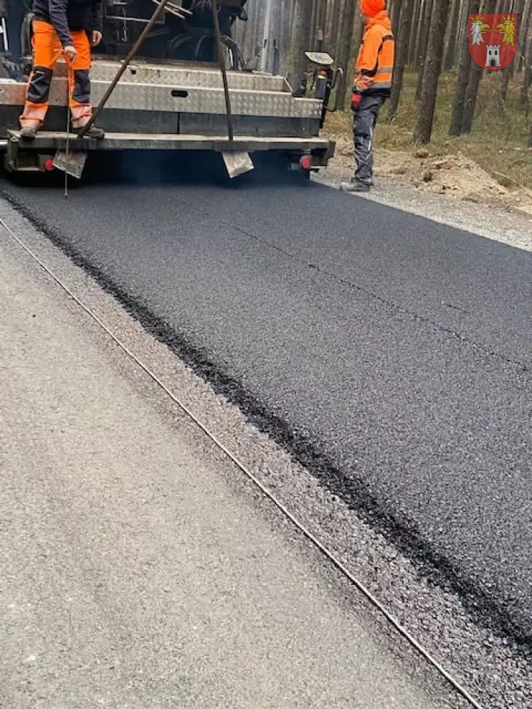Remont przewidywał całkowitą wymianę podbudowy z kruszywa, położenie nowej nawierzchni asfaltowej przy zachowaniu parametrów geometrycznych drogi.