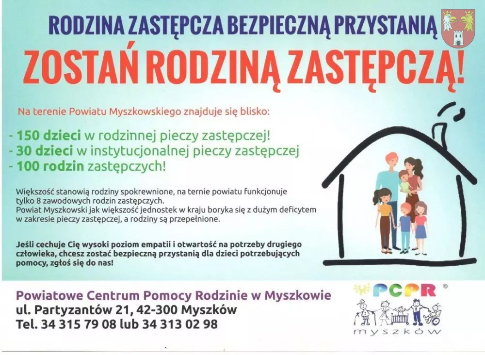 PCPR w Myszkowie zaprasza do kontaktu kandydatów na rodziców zastępczych.![]()