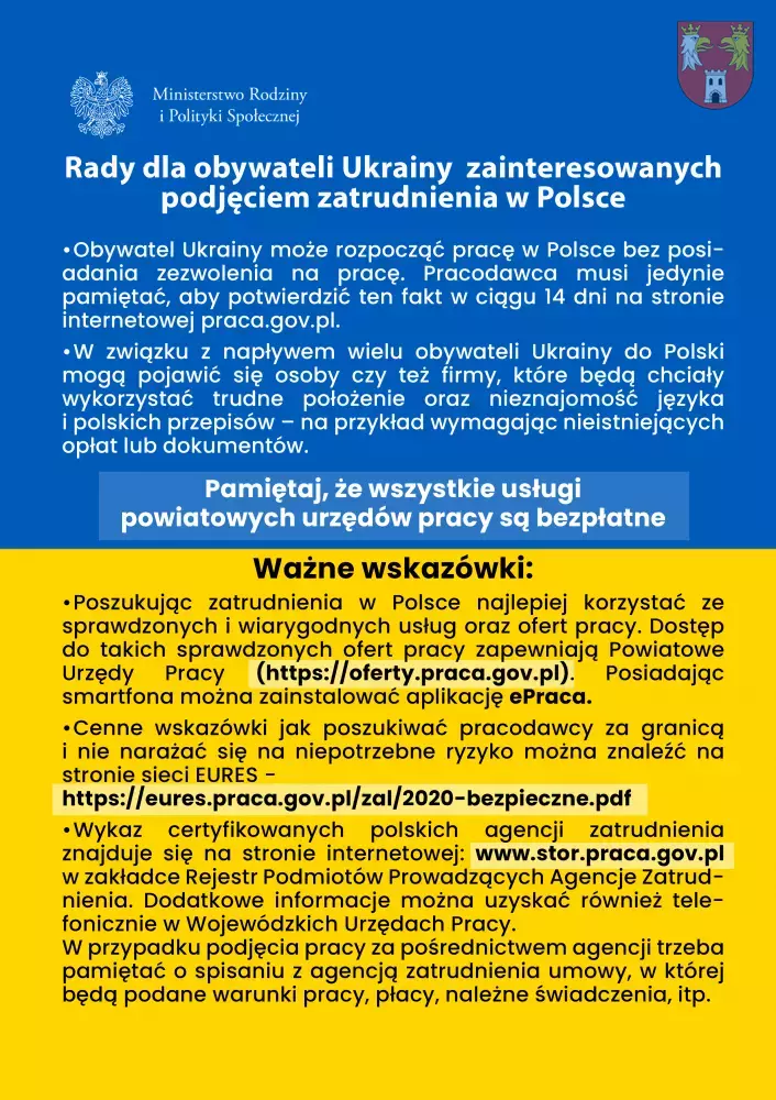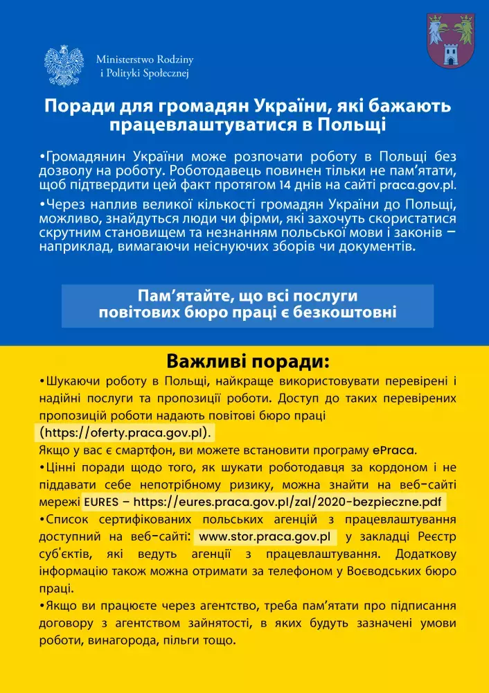 Rady dla obywateli Ukrainy zainteresowanych podjęciem zatrudnienia w Polsce