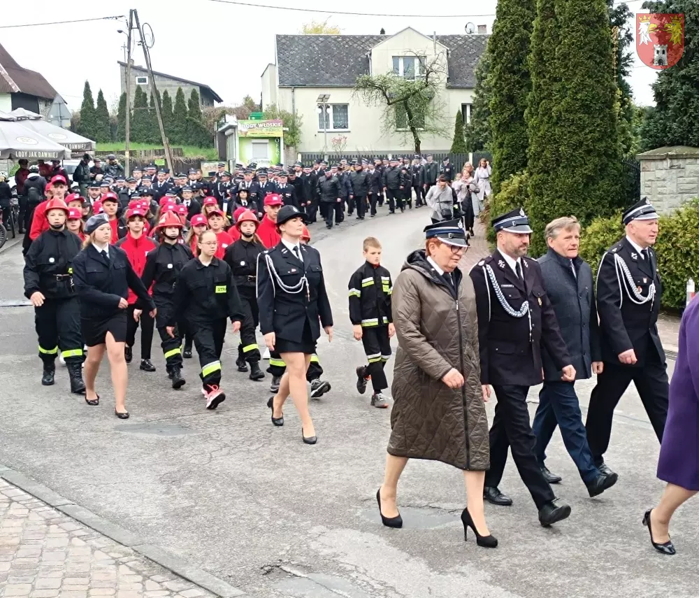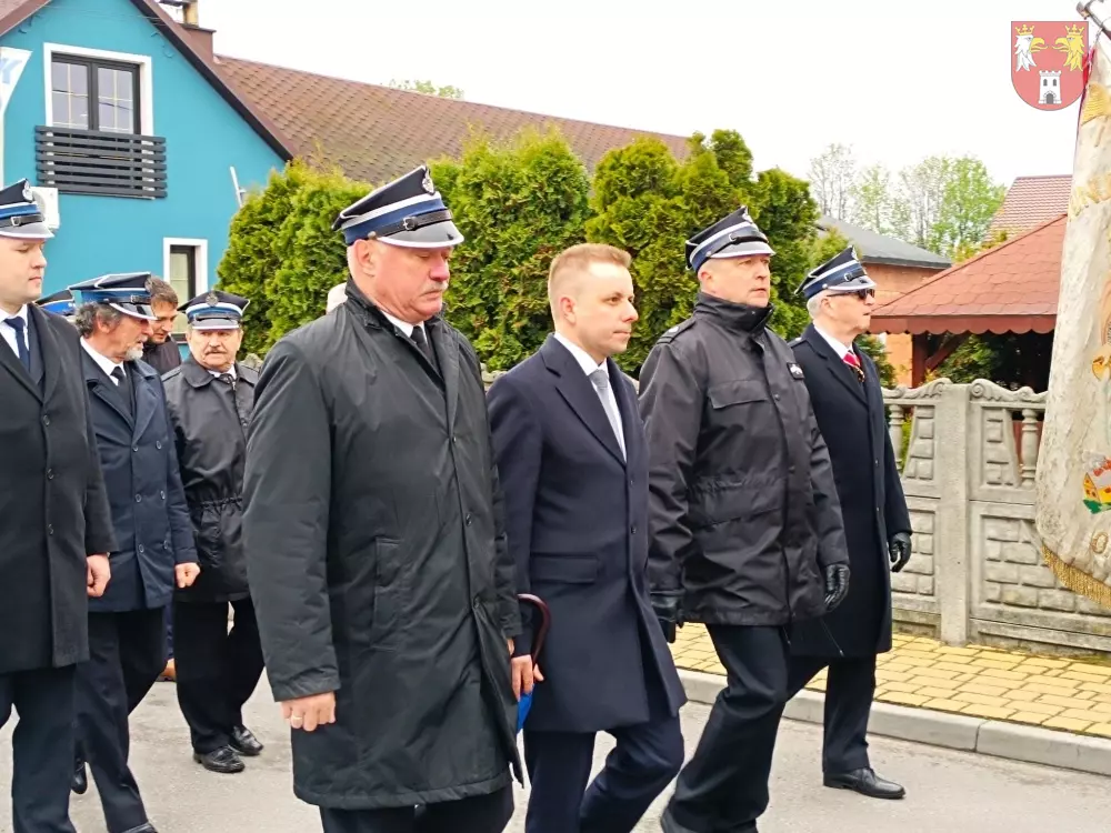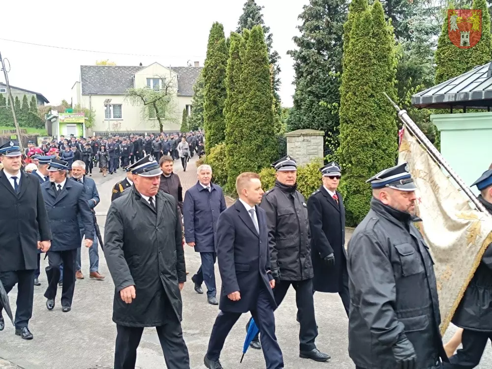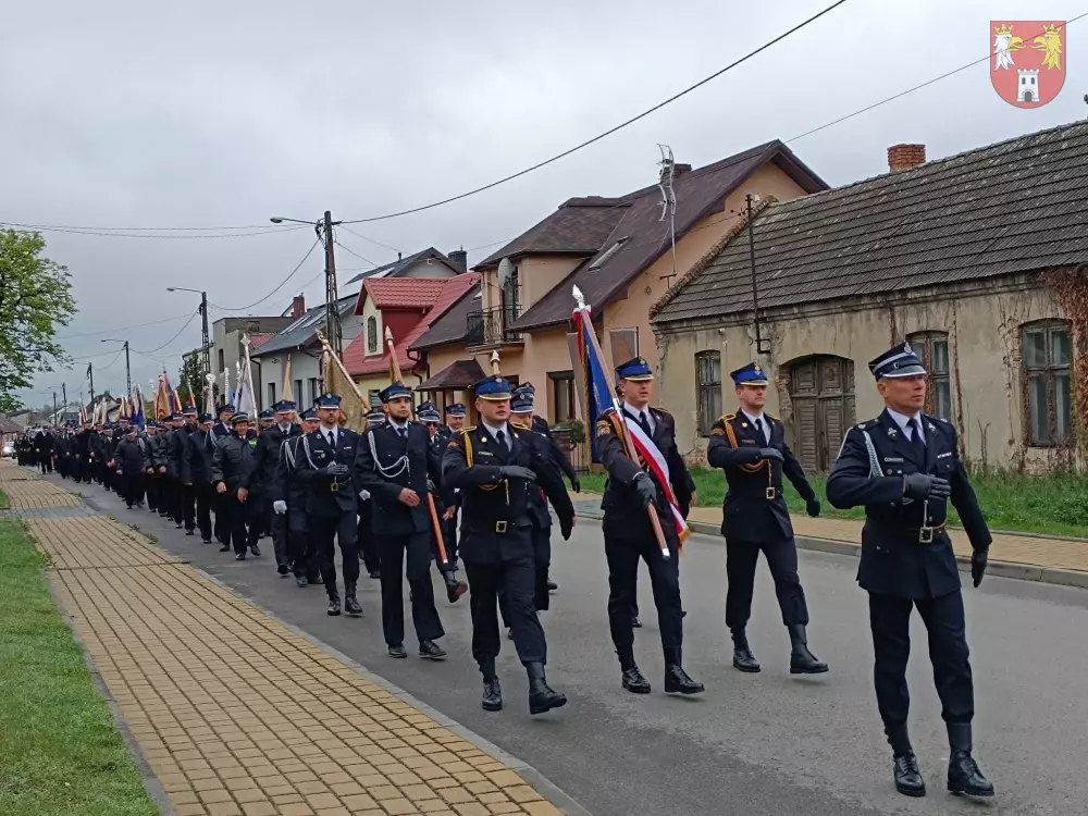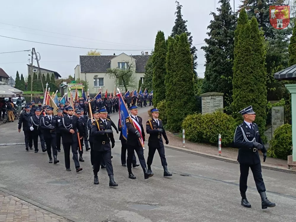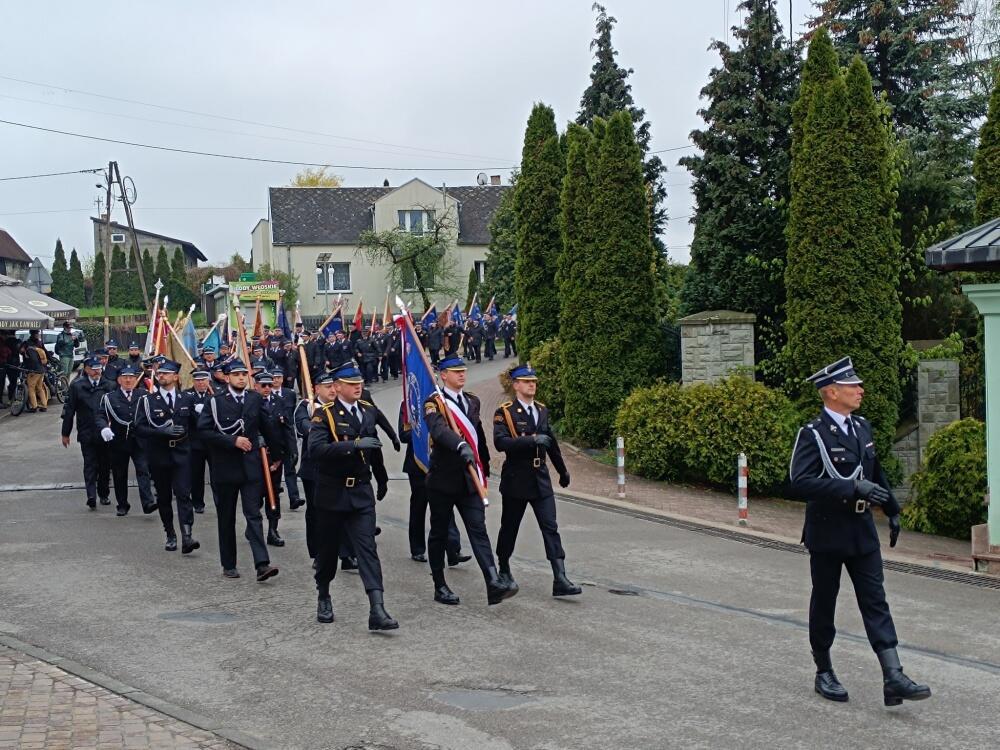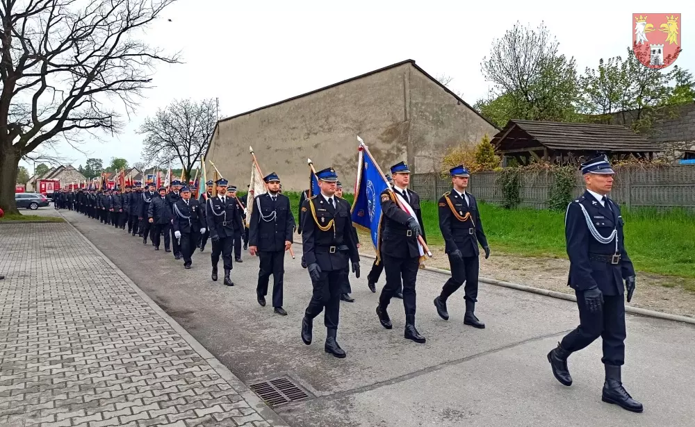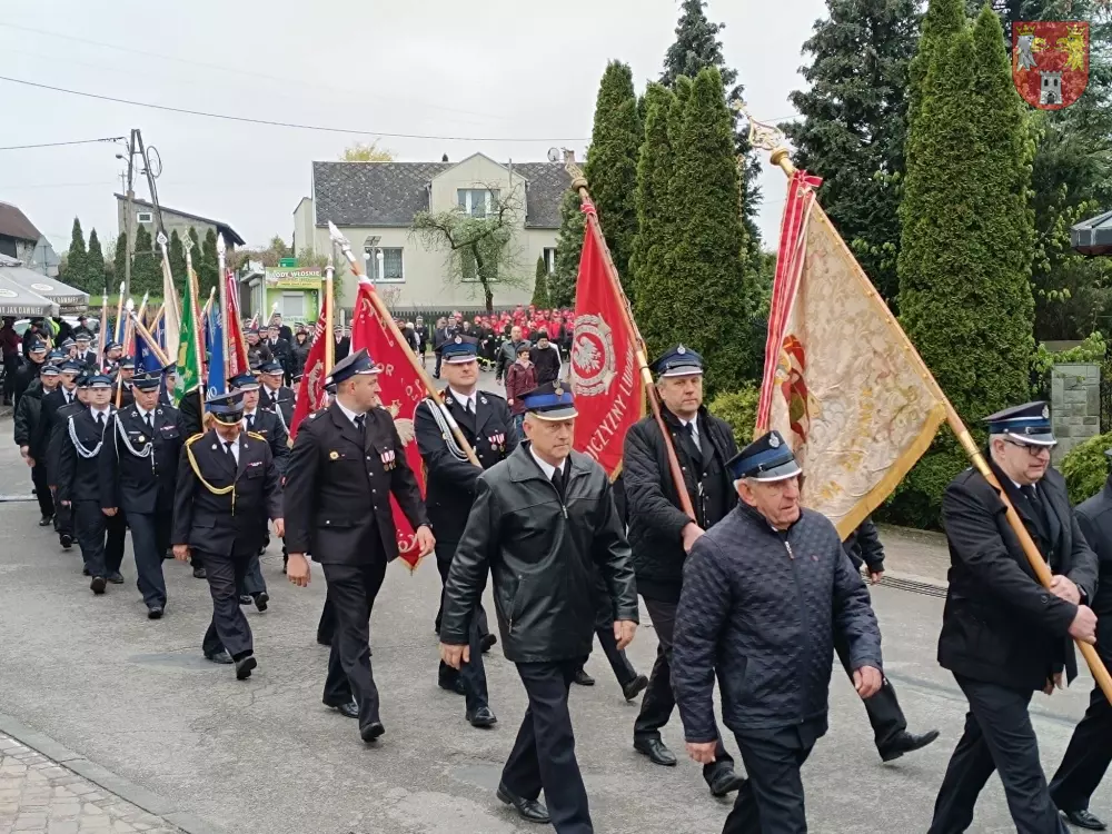 Jednostki z OSP z Powiatu Myszkowskiego zebrały się na terenie targowiska w Żarkach, skąd ruszył uroczysty przemarsz do Leśniowa.