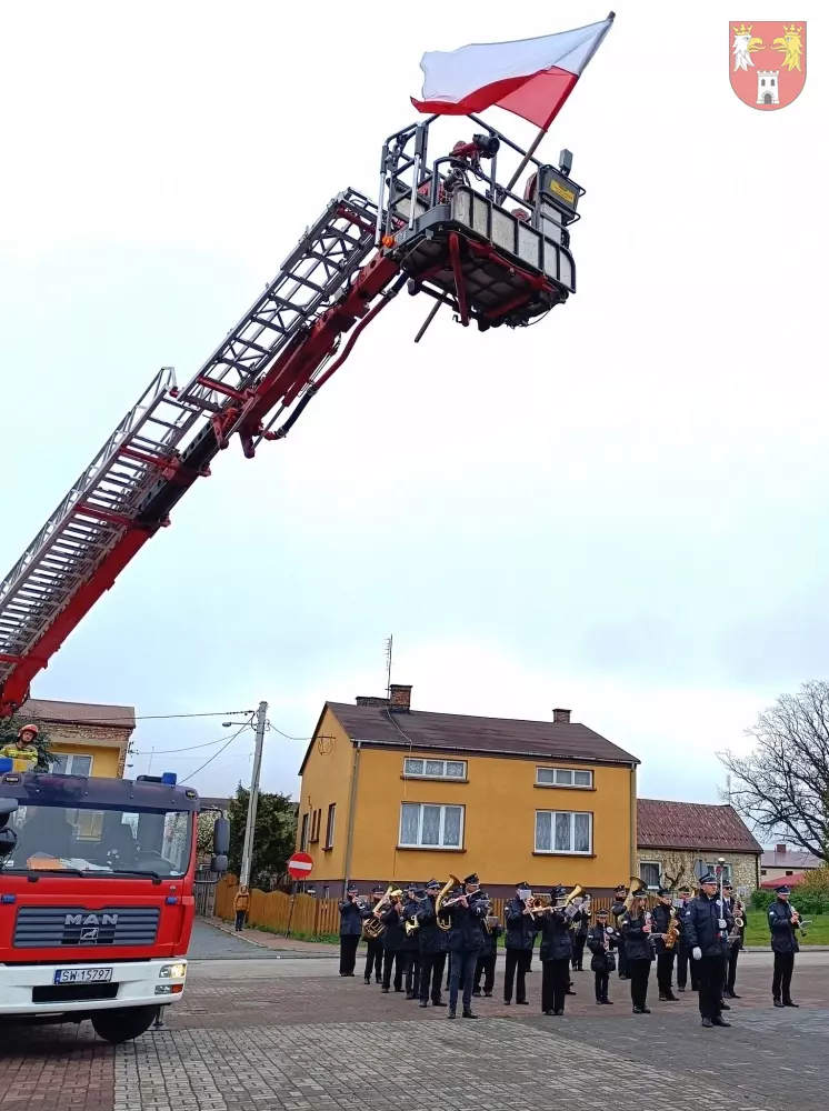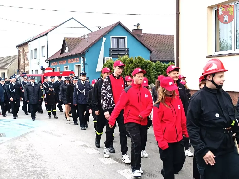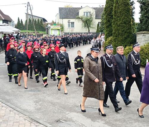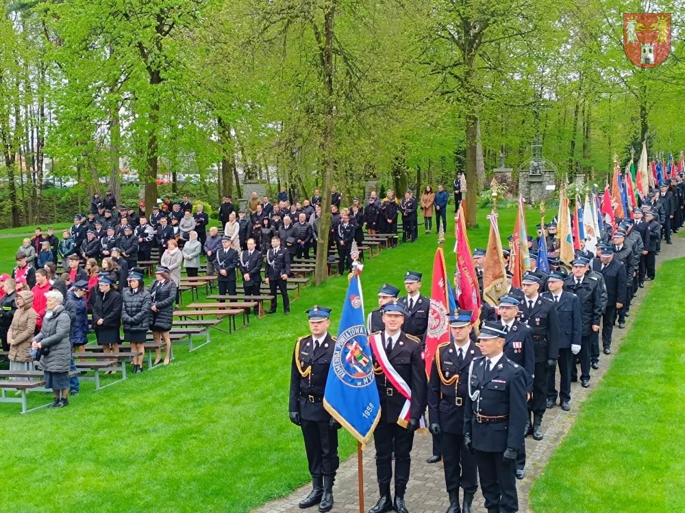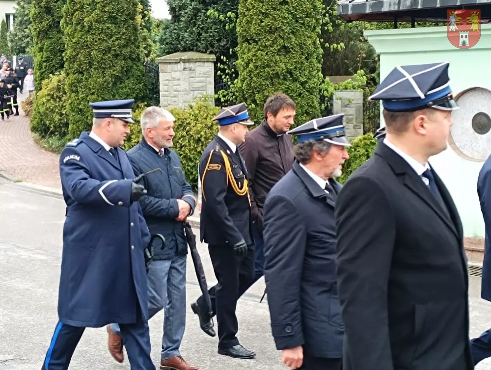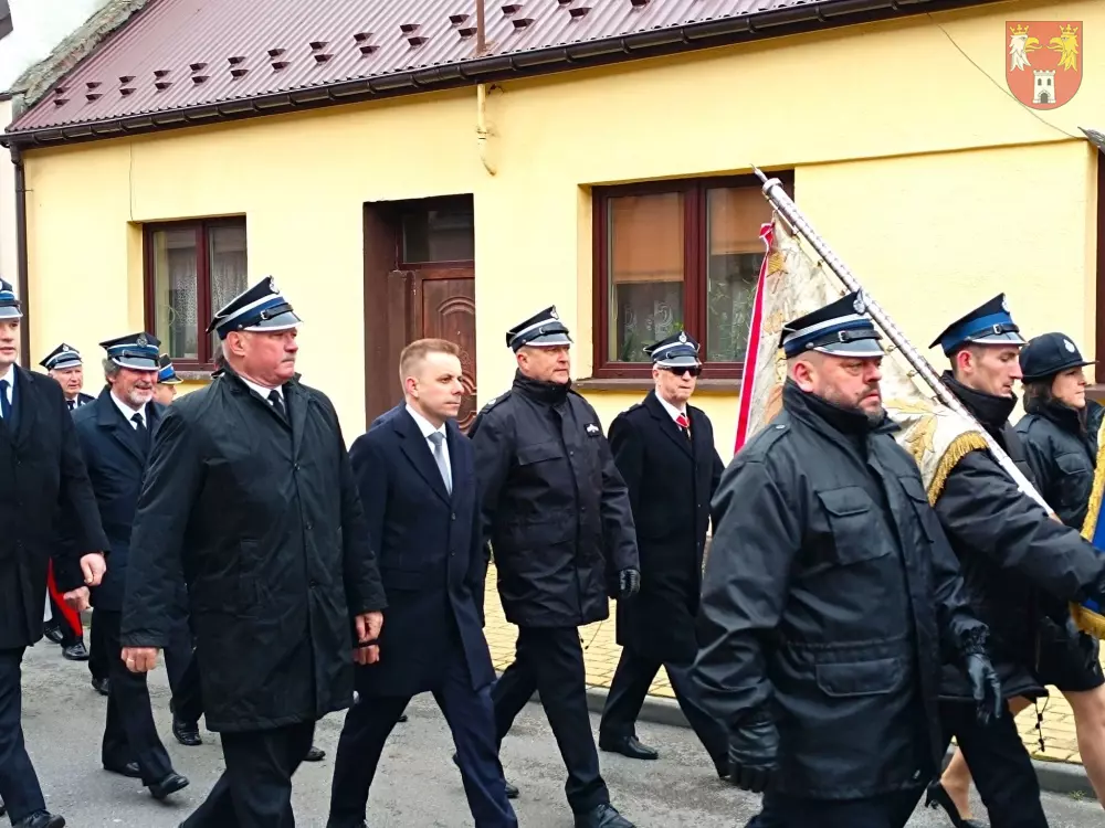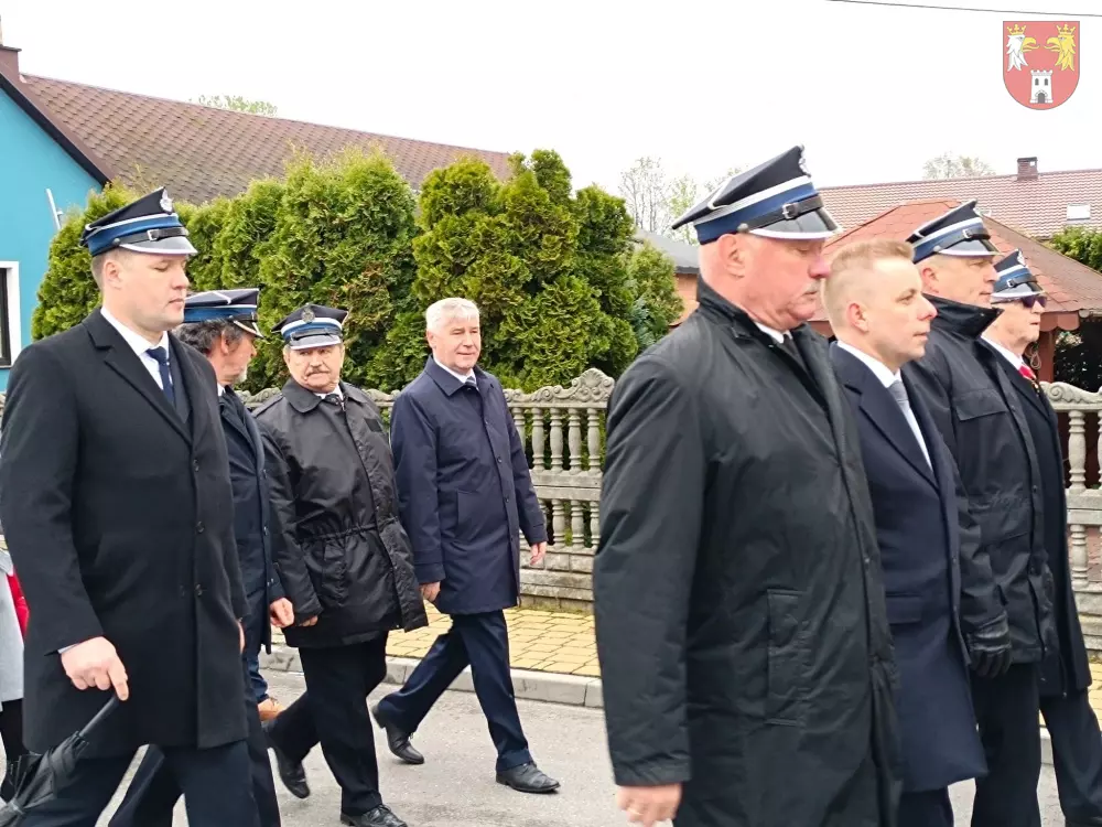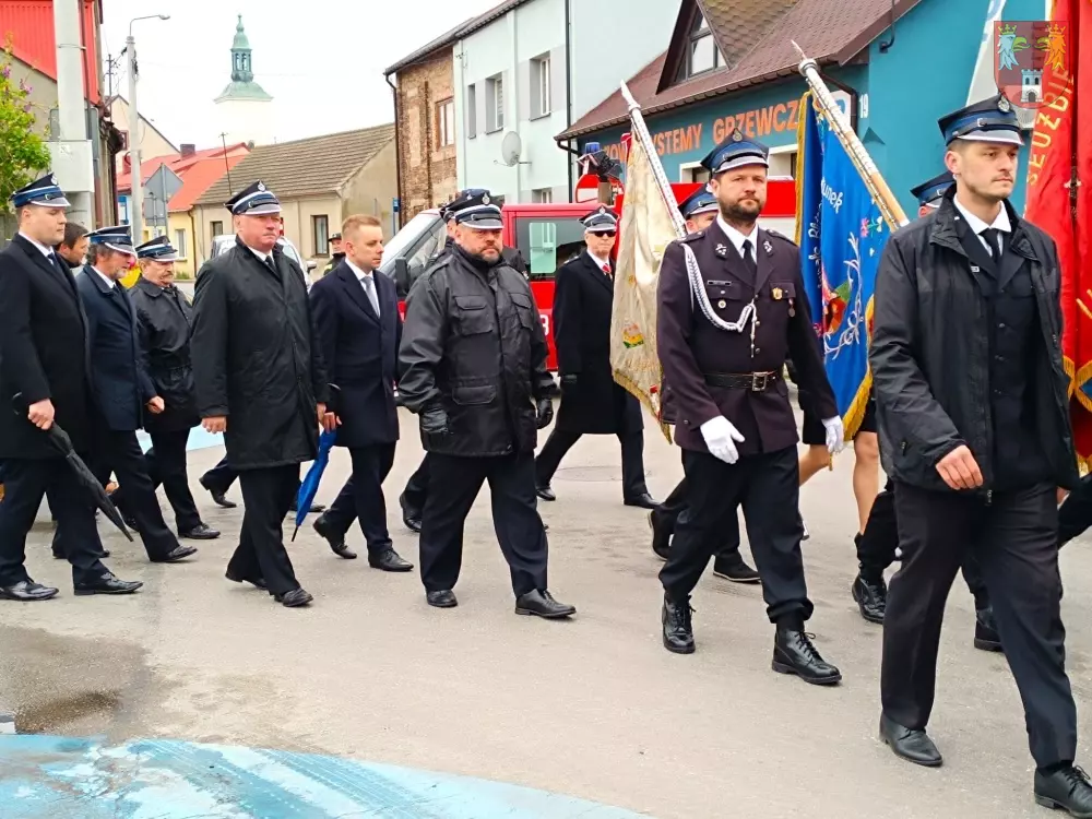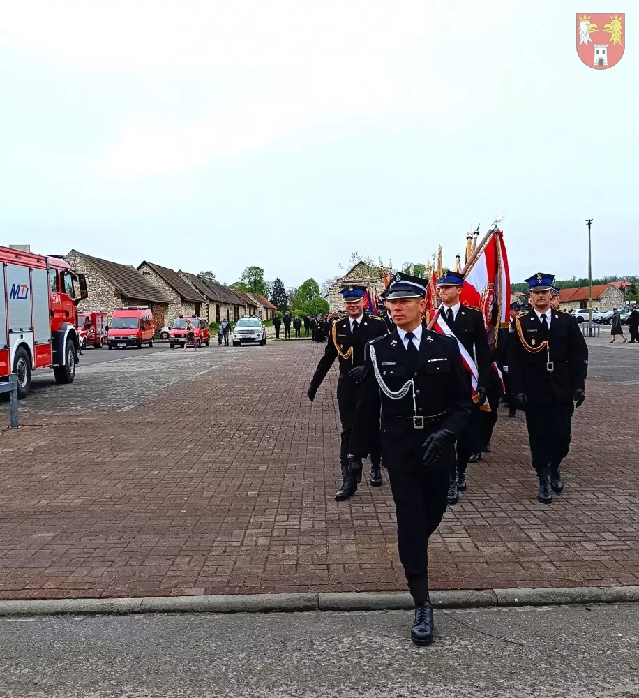 Jednostki z OSP z Powiatu Myszkowskiego zebrały się na terenie targowiska w Żarkach, skąd ruszył uroczysty przemarsz do Leśniowa.