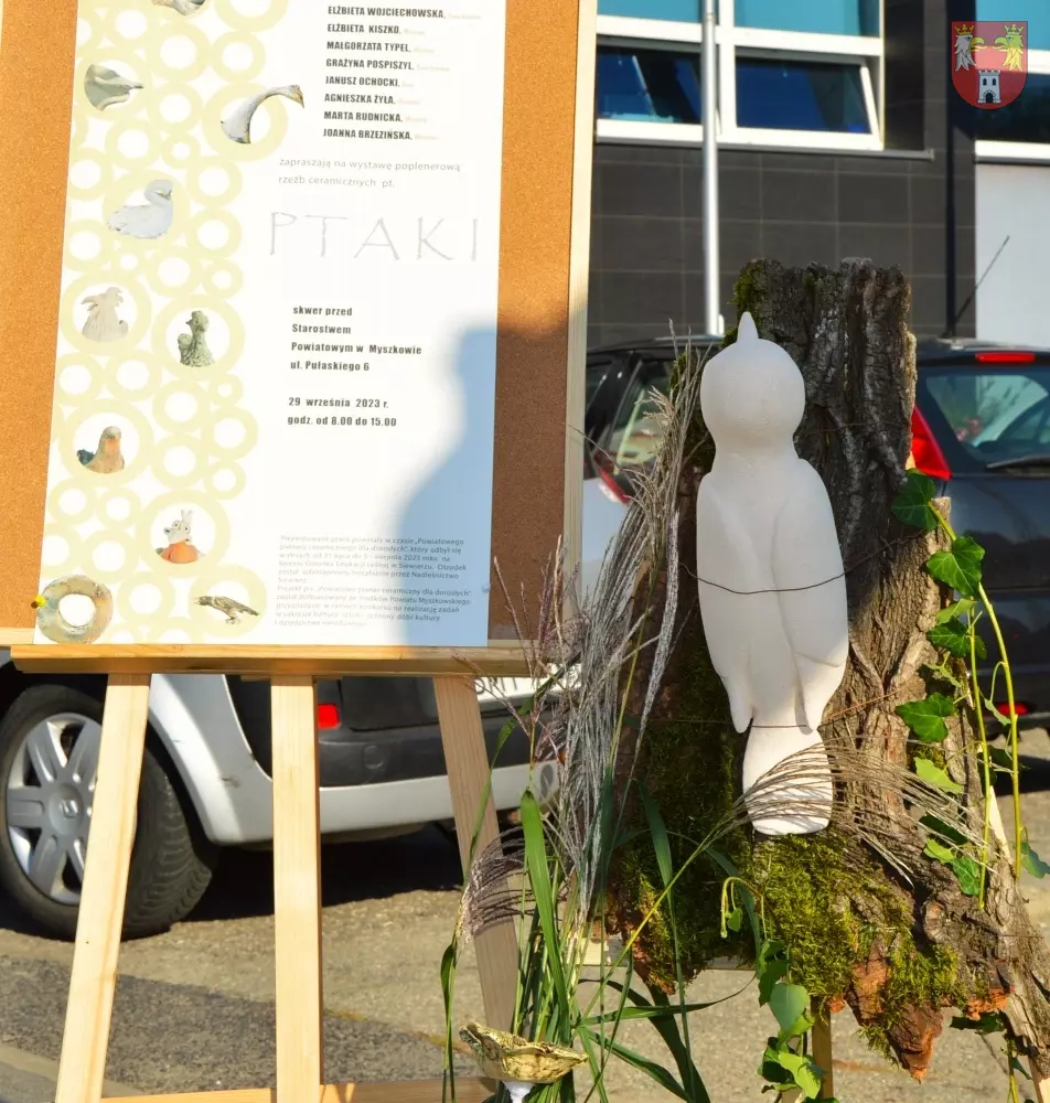 Przed głównym wejściem do Starostwa Powiatowego miała miejsce niezwykła wystawa. Na skwerze nieopodal schodów stanęły rzeźby, wykonane przez uczestników pracowni ceramicznej „Mozaika” z Myszkowa. Jest to efekt projektu przygotowanego przez Stowarzyszenie „Dworzec Kultura”. Powiat Myszkowski wsparł organizację przedsięwzięcia.