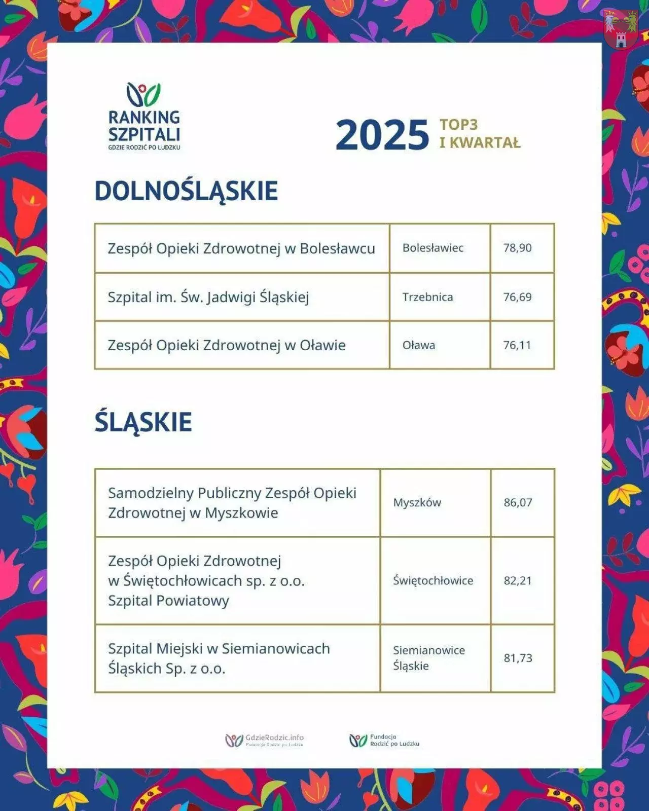 Myszkowski Szpital Powiatowy na pierwszym miejscu w Rankingu Szpitali Fundacji Rodzić po Ludzku za I kwartał 2025 roku!