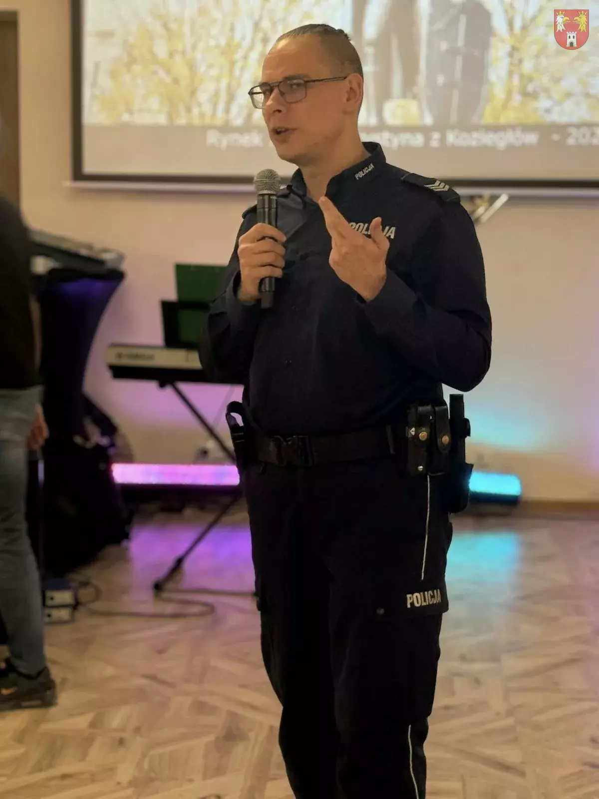 Uczestnicy mieli również okazję wysłuchać prelekcji przygotowanej przez funkcjonariuszy Komendy Powiatowej Policji w Myszkowie, dotyczącej bezpieczeństwa seniorów. Omówiono m.in. sposoby ochrony przed oszustwami metodą „na wnuczka” oraz zasady bezpiecznego korzystania z internetu.