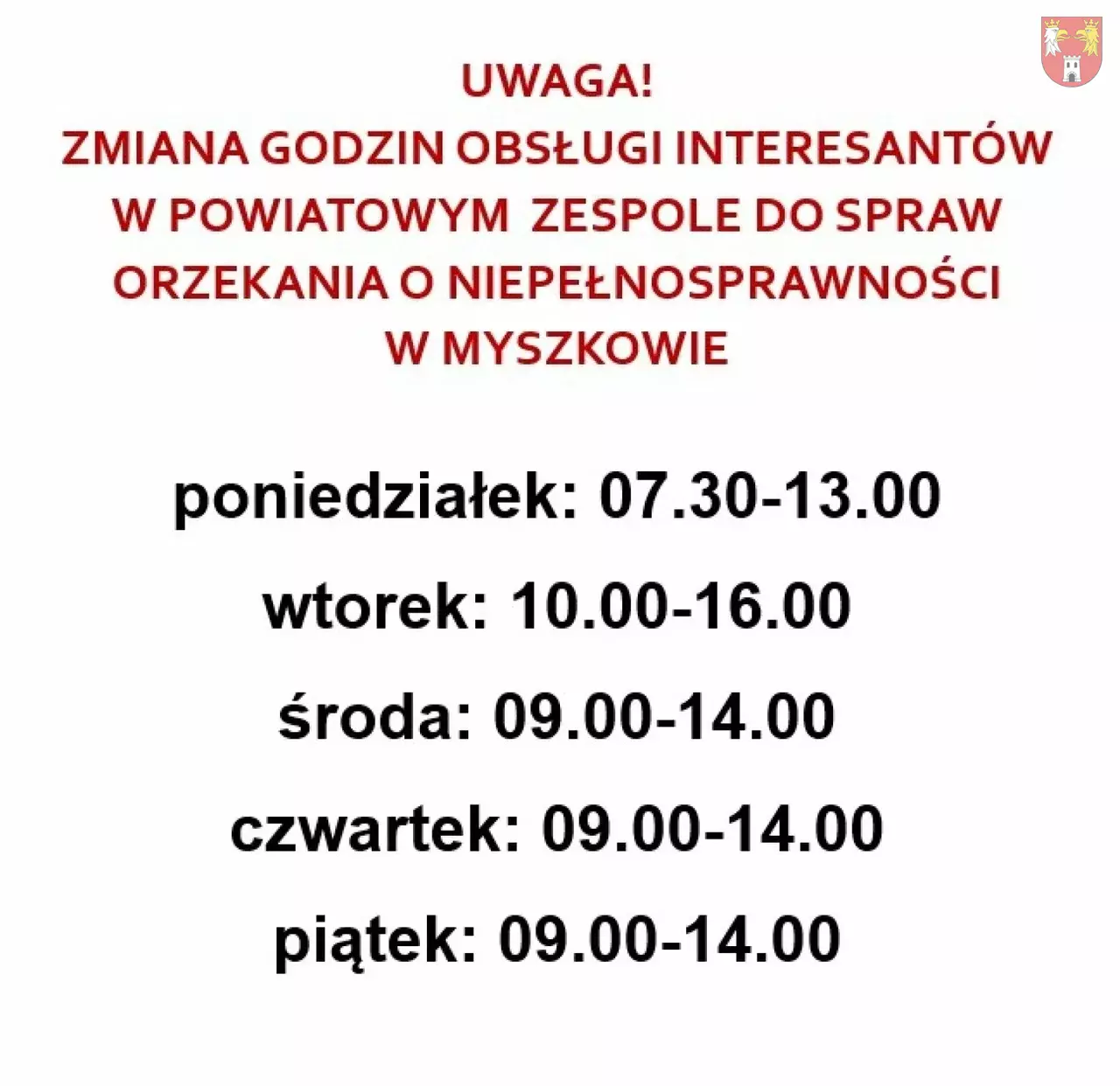 Zmiana godzin przyjmowania Interesantów