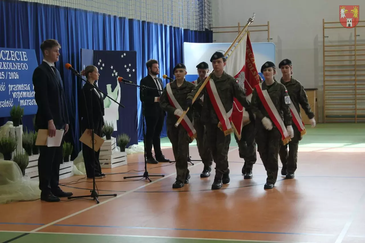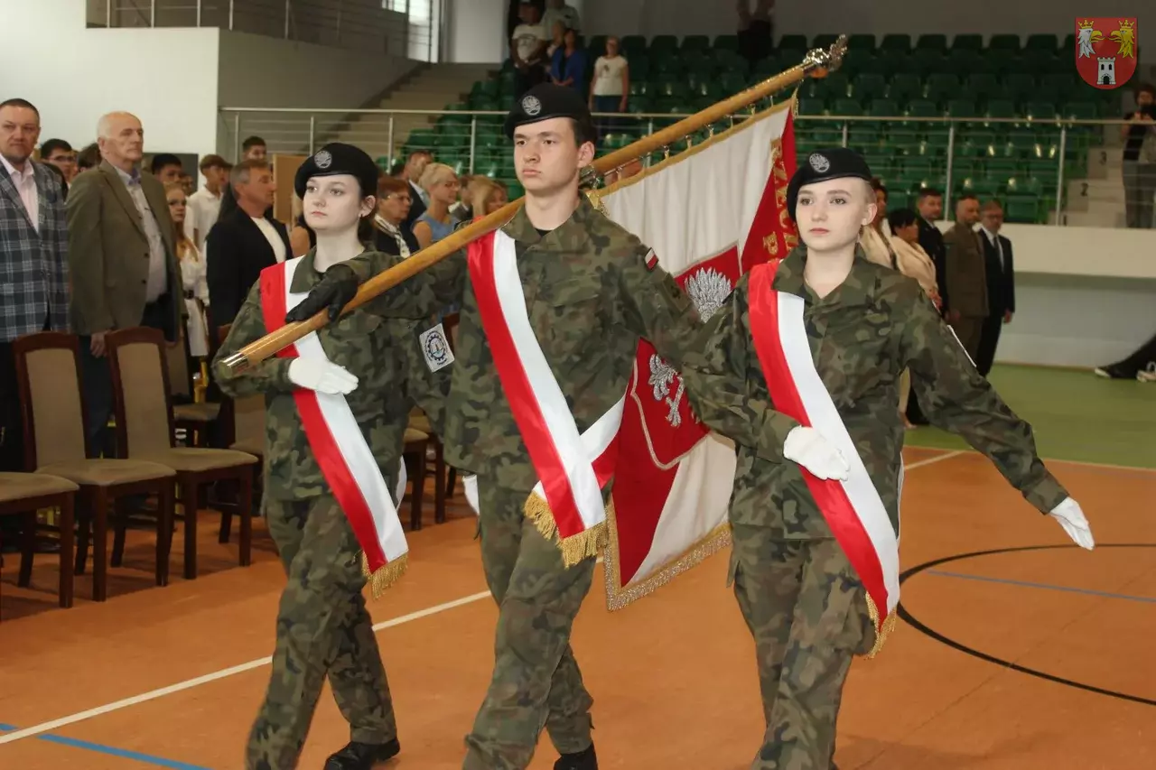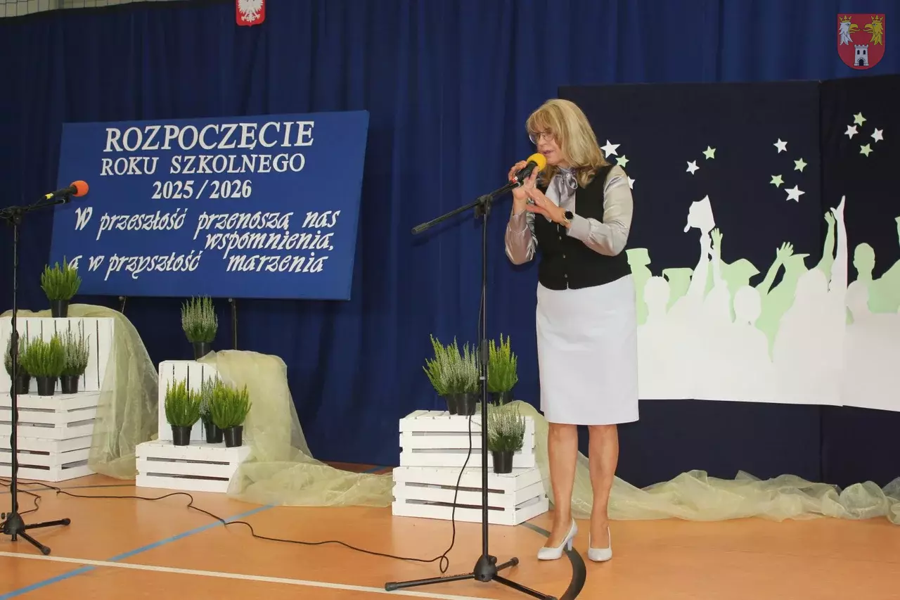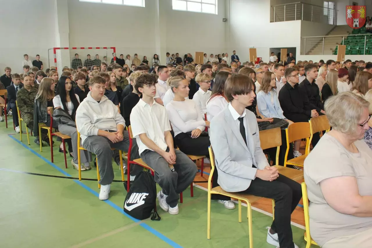 📙✂️Inauguracja roku szkolnego w Zespół Szkół nr 1 im. Eugeniusza Kwiatkowskiego w Myszkowie odbyła się na sali gimnastycznej, gdzie zgromadziła się cała młodzież, grono pedagogiczne i rodzice. Przybyłych gości powitała Dyrektor Mariola Majewska.
