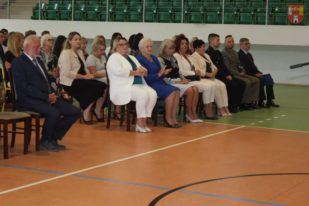 📔📒Wśród zaproszonych gości byli m.in. – Wiceprzewodnicząca Rady Powiatu Zdzisława Polak i Sekretarz Powiatu Krystyna Jasińska, które w imieniu Rady Powiatu i Zarządu Powiatu złożyły wszystkim uczniom, aby ten nadchodzący rok szkolny był czasem nowych możliwości i wyzwań, zdobywania wiedzy, rozwijania pasji i zainteresowań oraz nawiązywania wspaniałych przyjaźni. Niech zdobyta wiedza umożliwi osiąganie sukcesów na dalszych etapach edukacji.